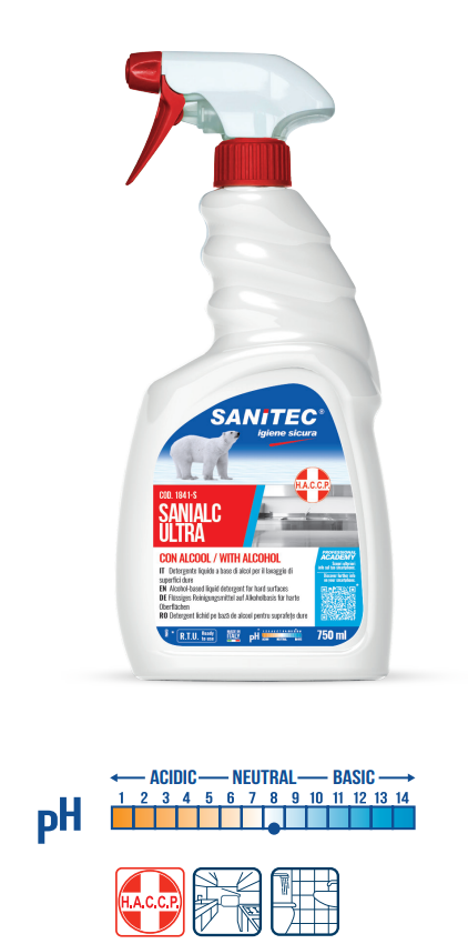 Sanitec Sanialc Ultra 77% Alcol Superfici Dure Tessut Professionale Haccp